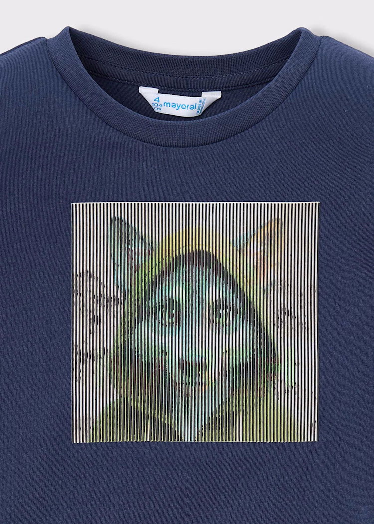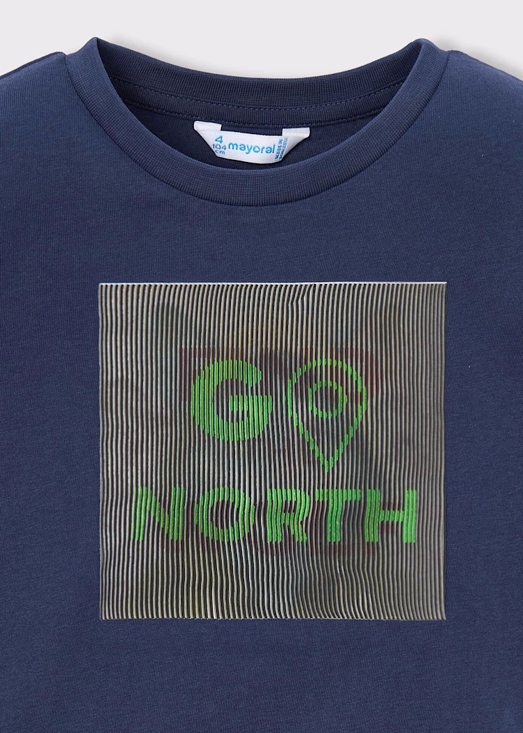 Langermet t-skjorte til gutt med rund hals og stilig dekorative elementer: Interaktivt motiv fra Mayoral sin “PLAY WITH-kolleksjon”. Se bilder