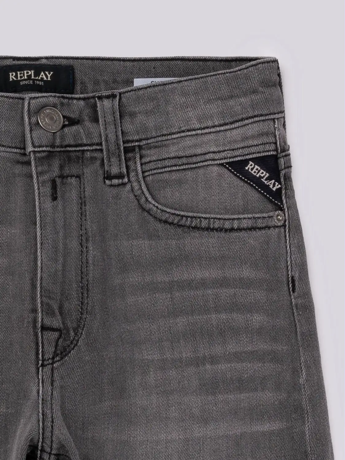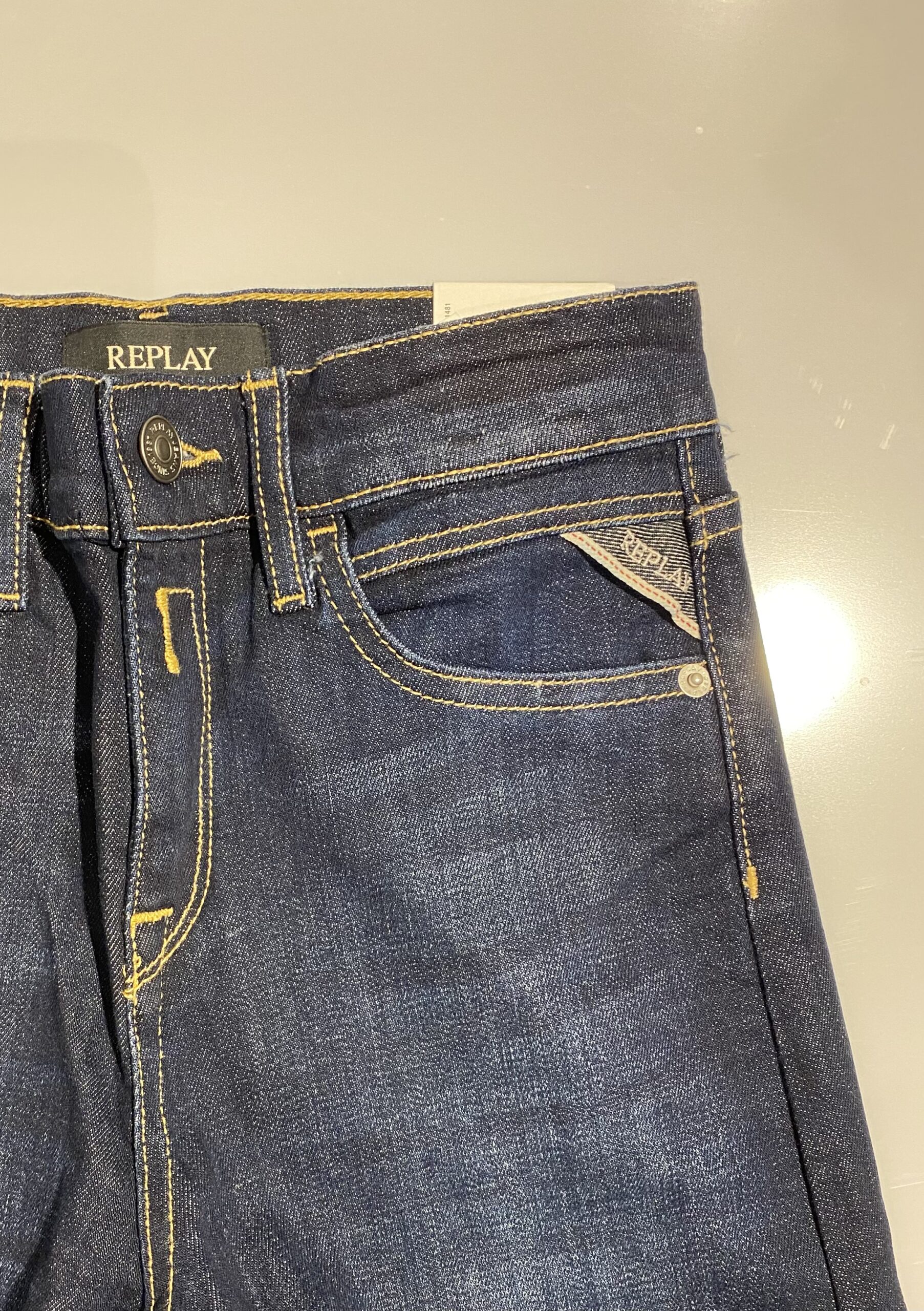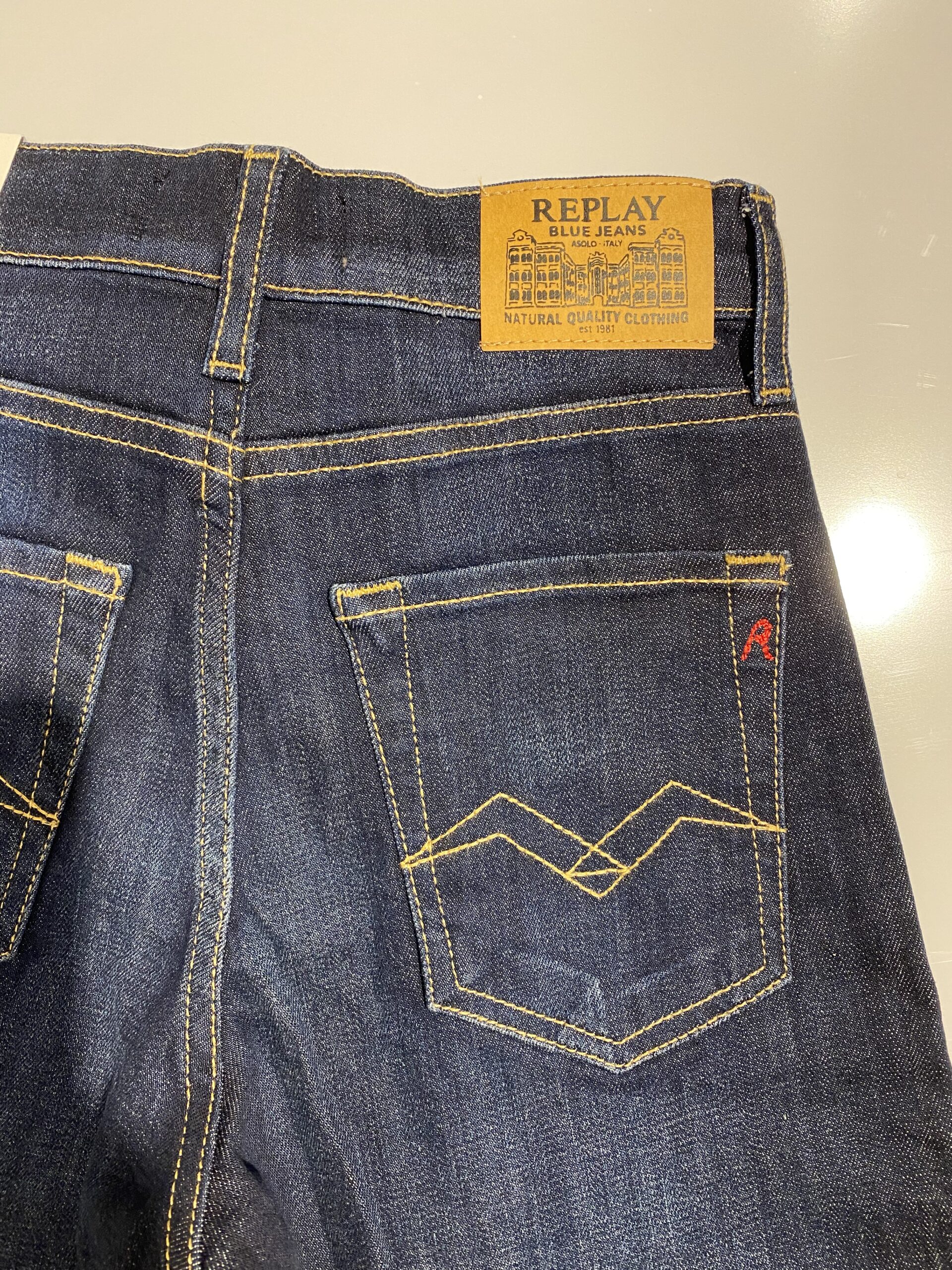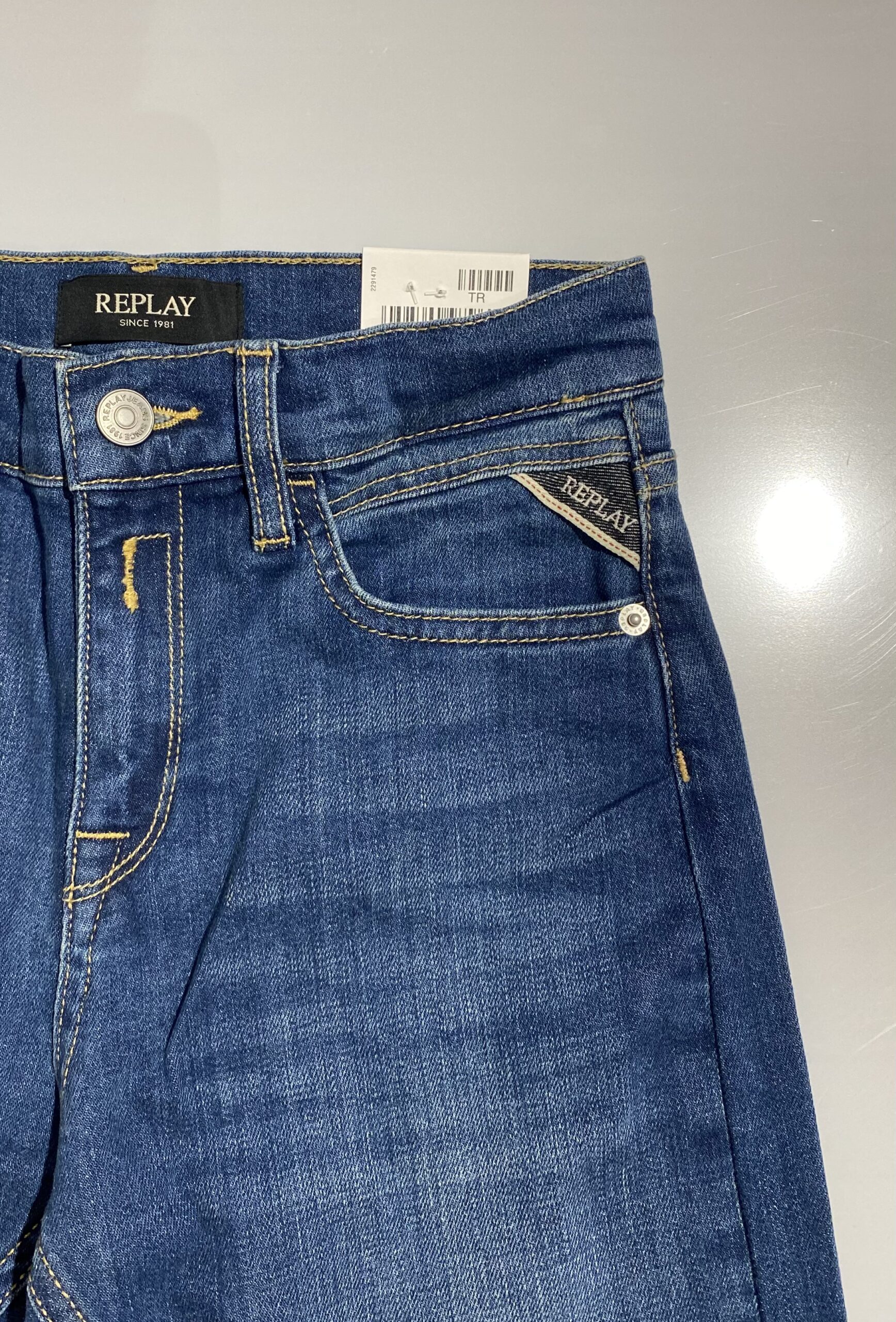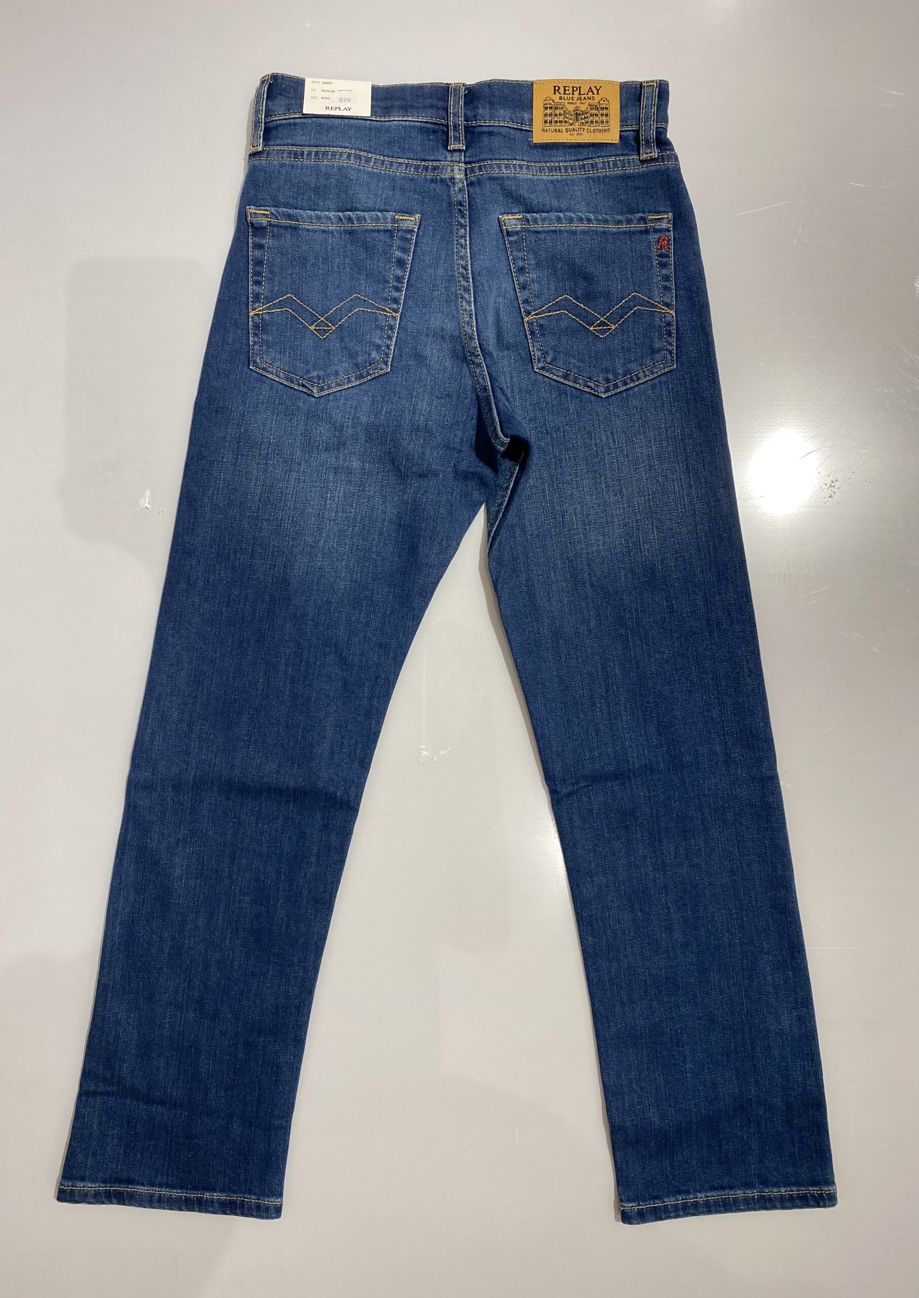 REPLAY Regular-fit jeans med litt avsmalnende ben fra kneet til kanten for en passform som er komfortabel og samtidig tettsittende. Dette femlommersplagget har den ikoniske måkevingesømmen på baklommene, hvorav den ene er med R-broderi, mens logomerket på baksiden og et lite spesialtilpasset innlegg på en av lommene i front.