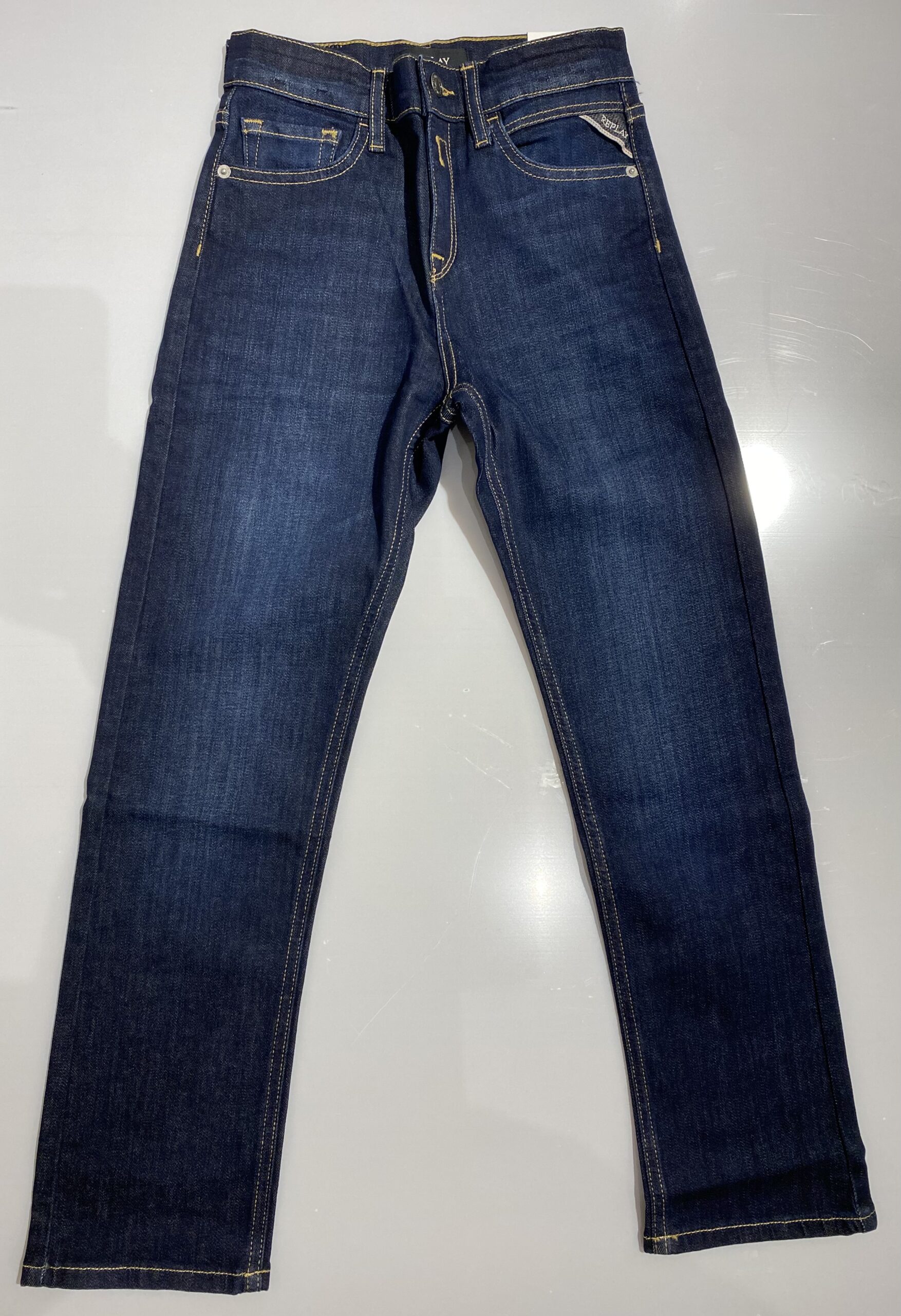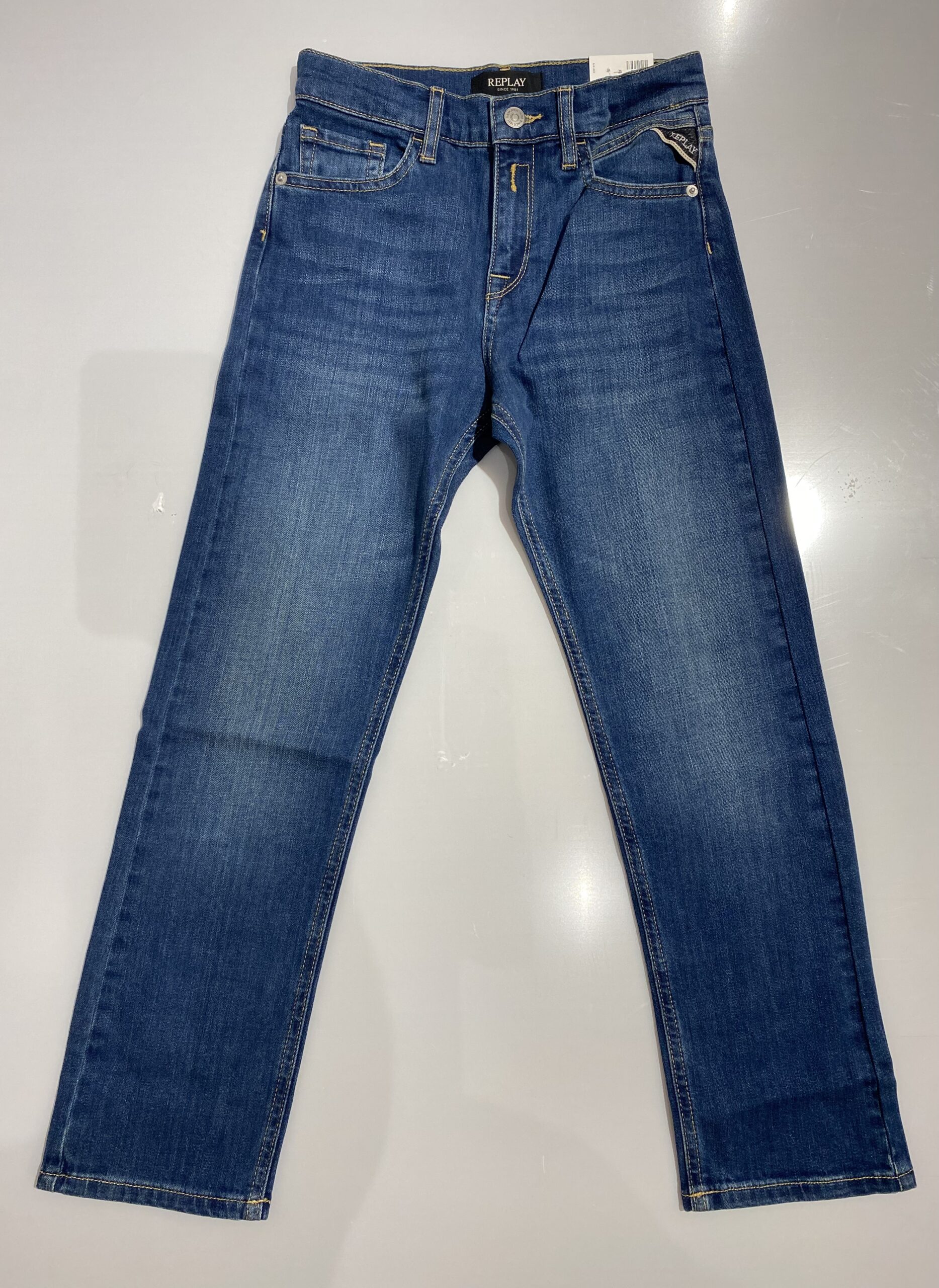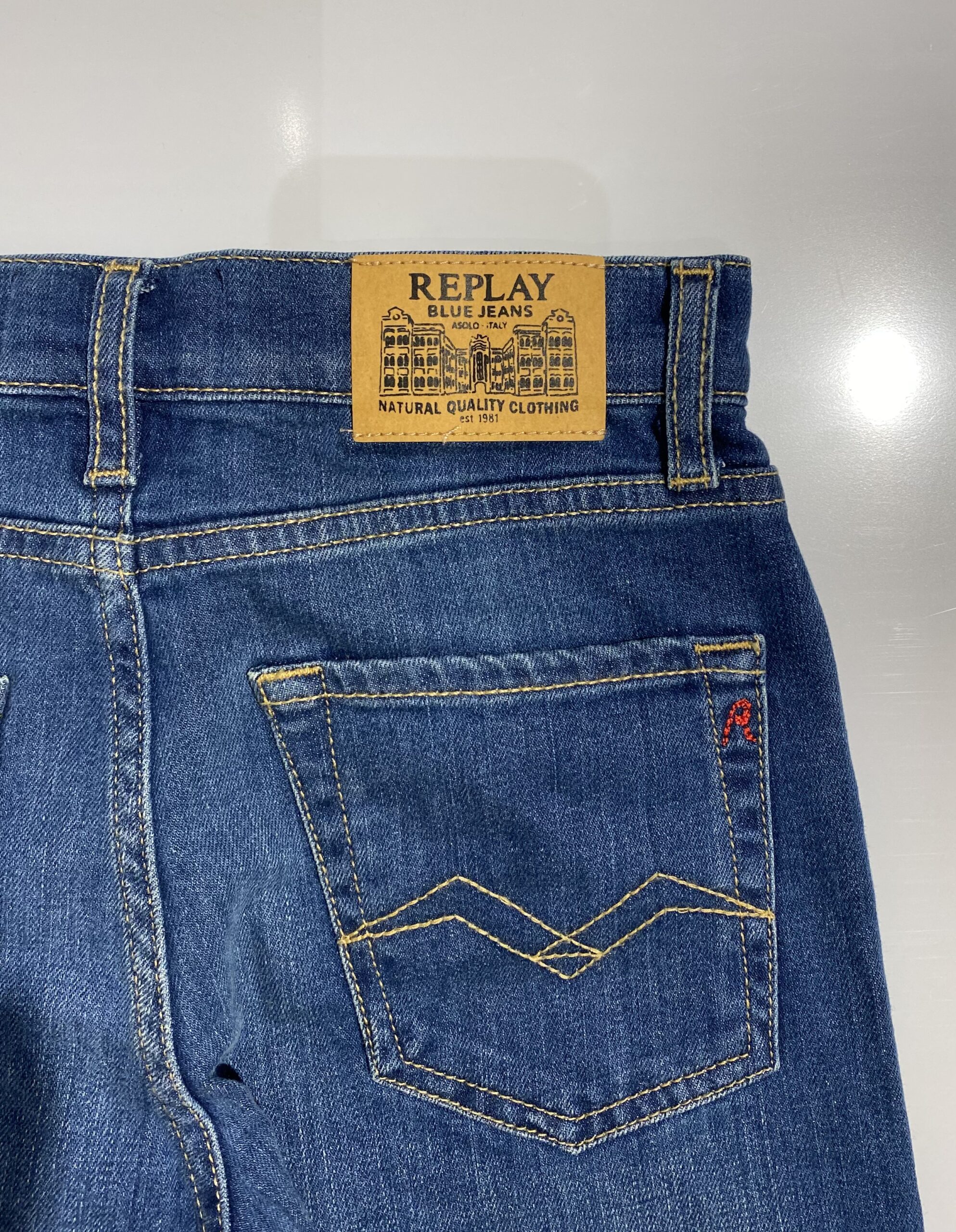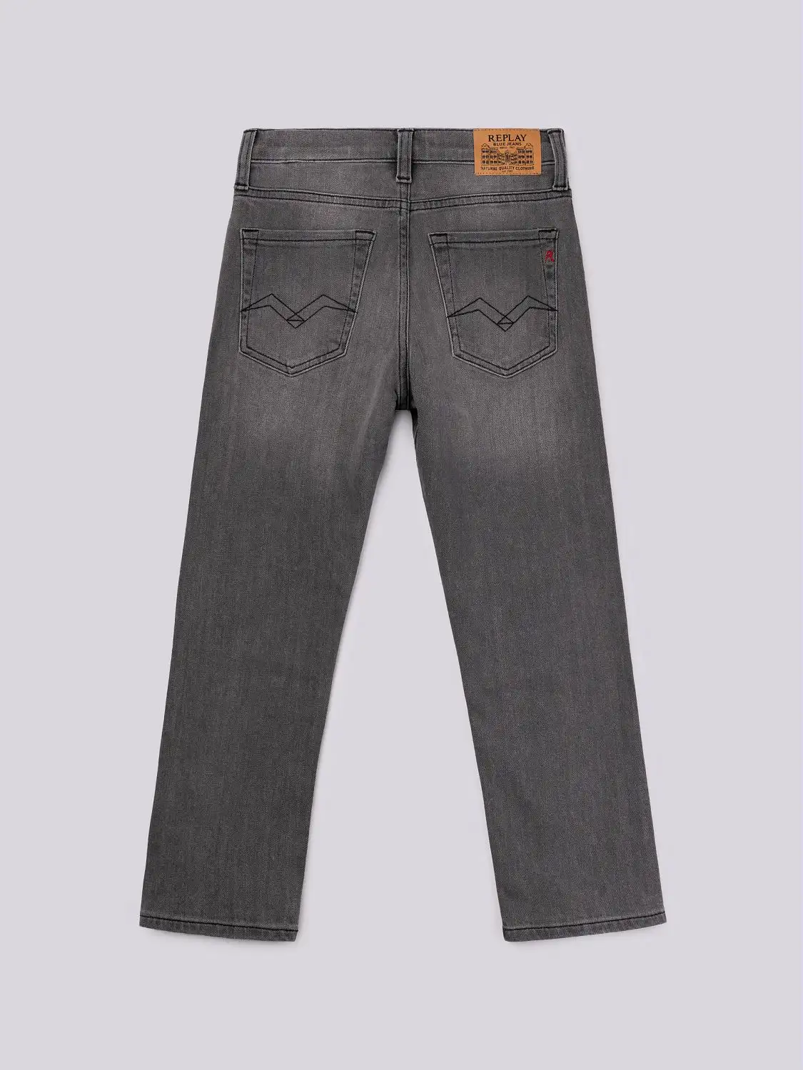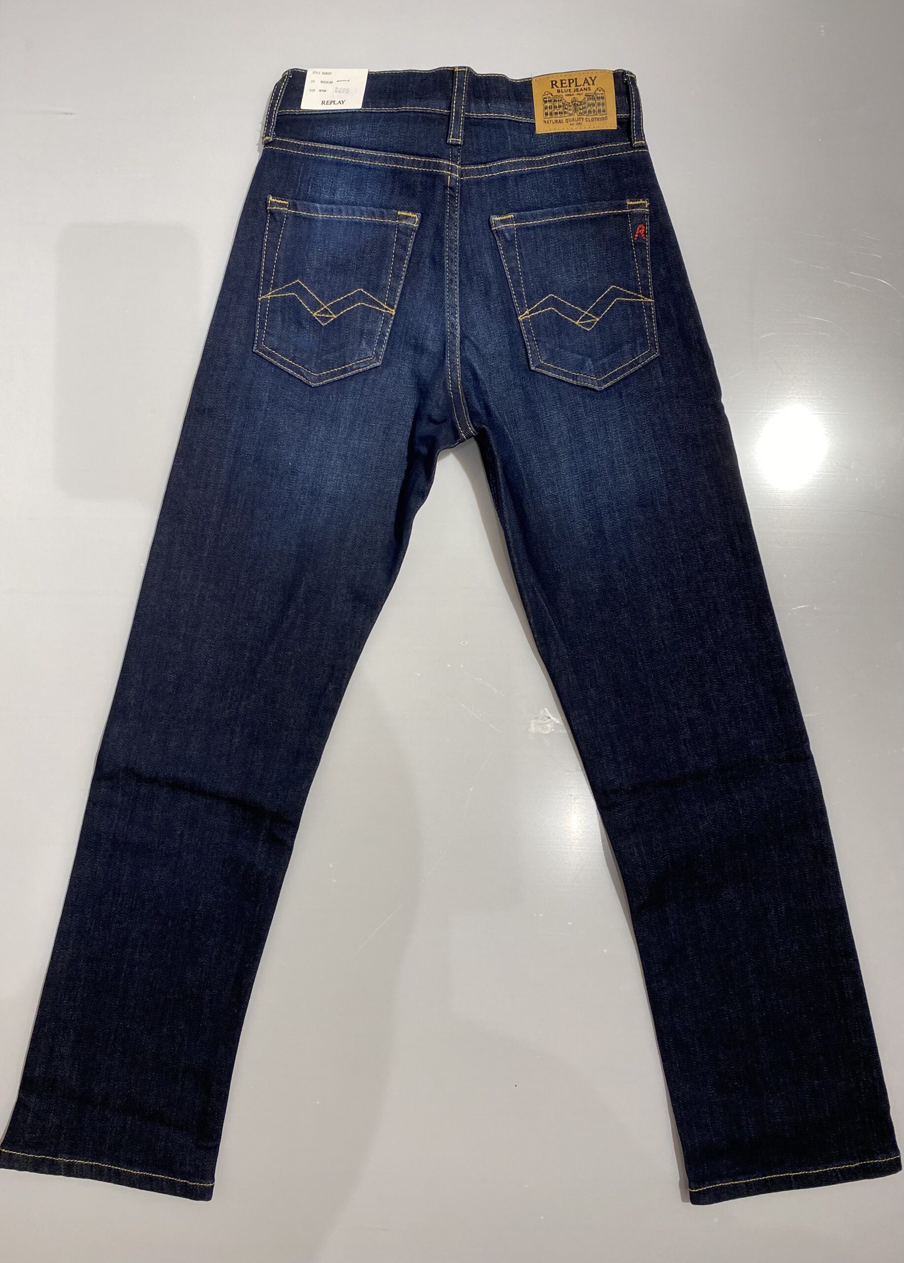 REPLAY Regular-fit jeans med litt avsmalnende ben fra kneet til kanten for en passform som er komfortabel og samtidig tettsittende. Dette femlommersplagget har den ikoniske måkevingesømmen på baklommene, hvorav den ene er med R-broderi, mens logomerket på baksiden og et lite spesialtilpasset innlegg på en av lommene i front.
