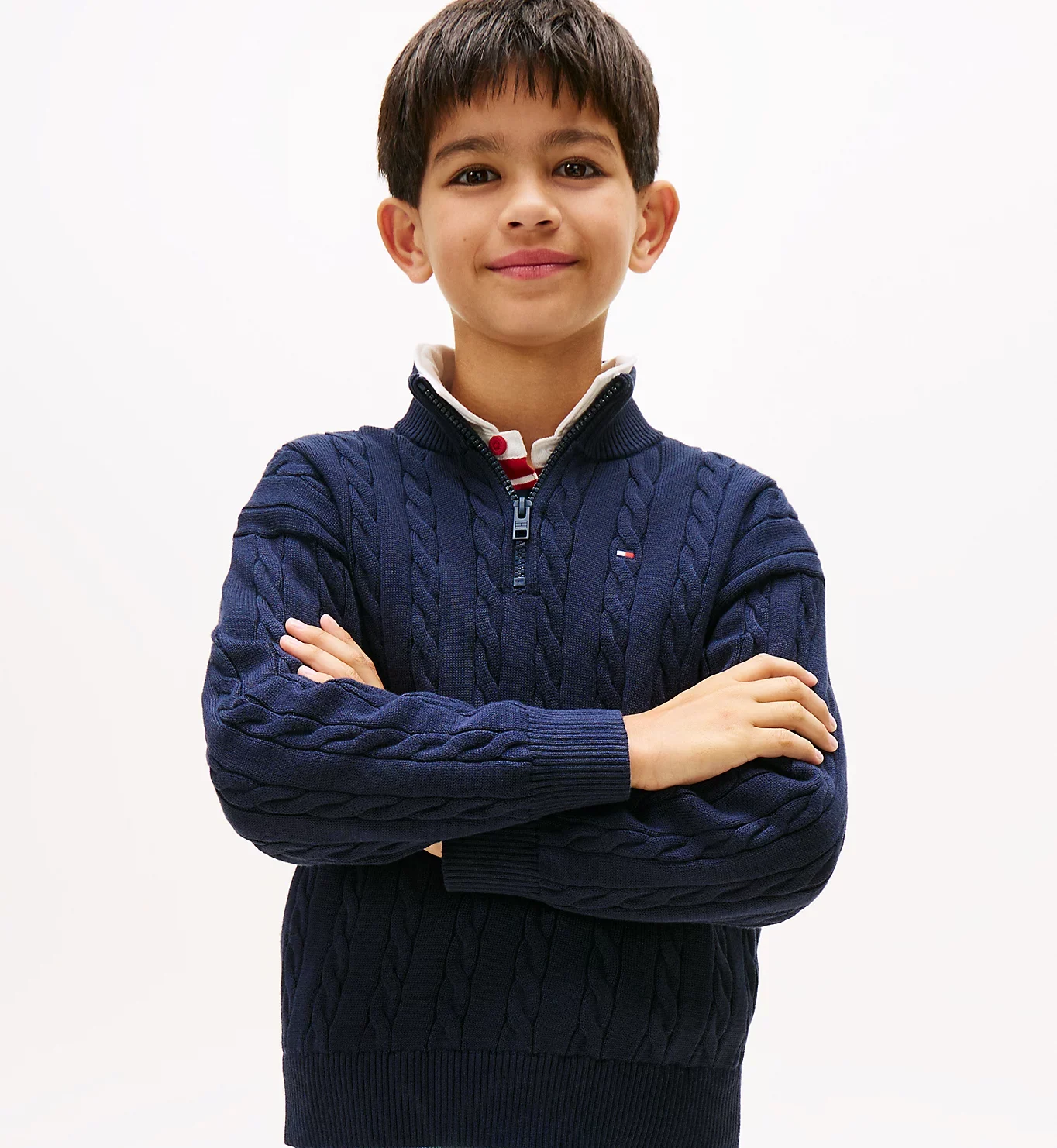 Denne kabelstrikkede genseren fra Tommy Hilfiger er ideell som et hverdagsplagg så vell som et plagg til litt penere anledninger. Med klassisk kabelmønster og med stilig half-zip glidelås er den et kult tillegg i garderoben!