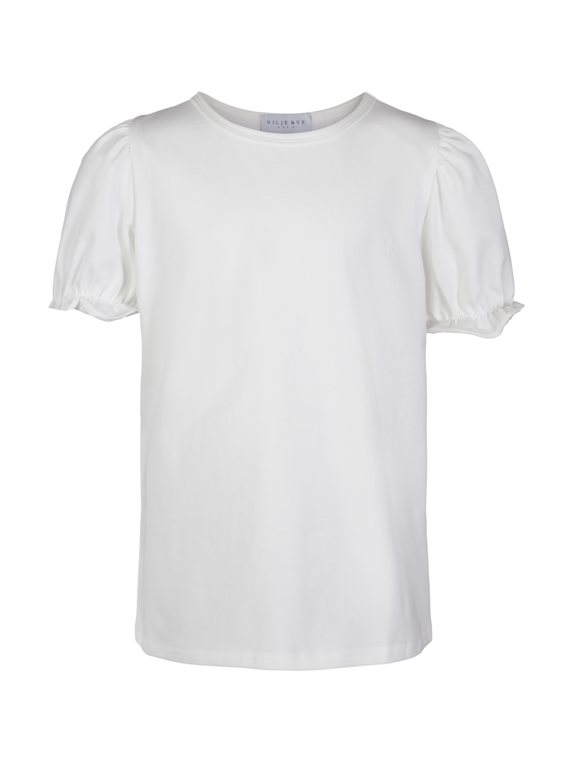 Supersøt topp fra Vilje & Ve som heter “Mia”! Kvaliteten er så myk og god at dette er en drøm av en t-shirt å gå med. Også er den veldig søt i sitt design med posede ermer og en feminin c-neck! Den perfekte sommer t-shirt som går til et hver antrekk!